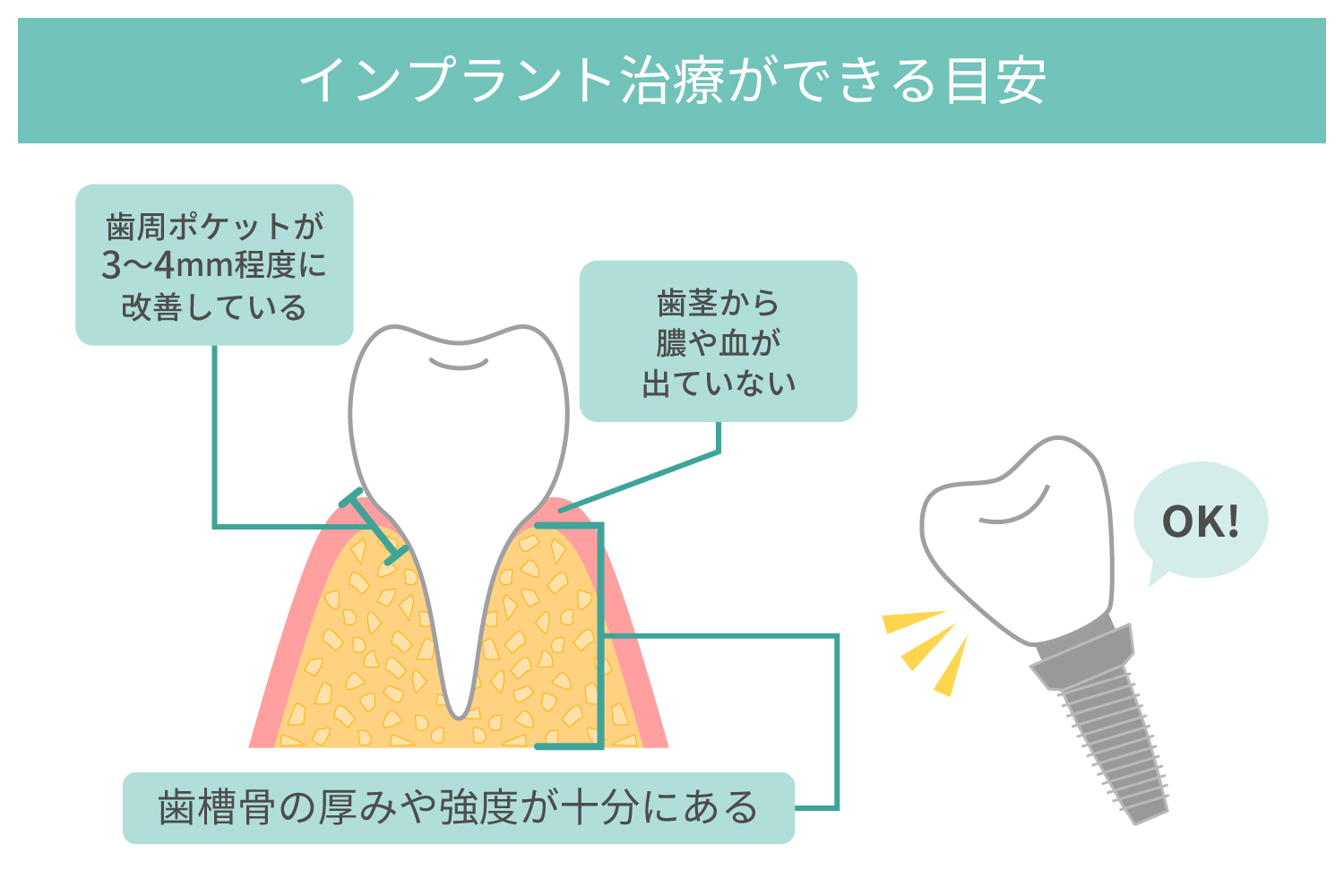 インプラント治療ができる歯周病の治癒の目安は以下の通りです。